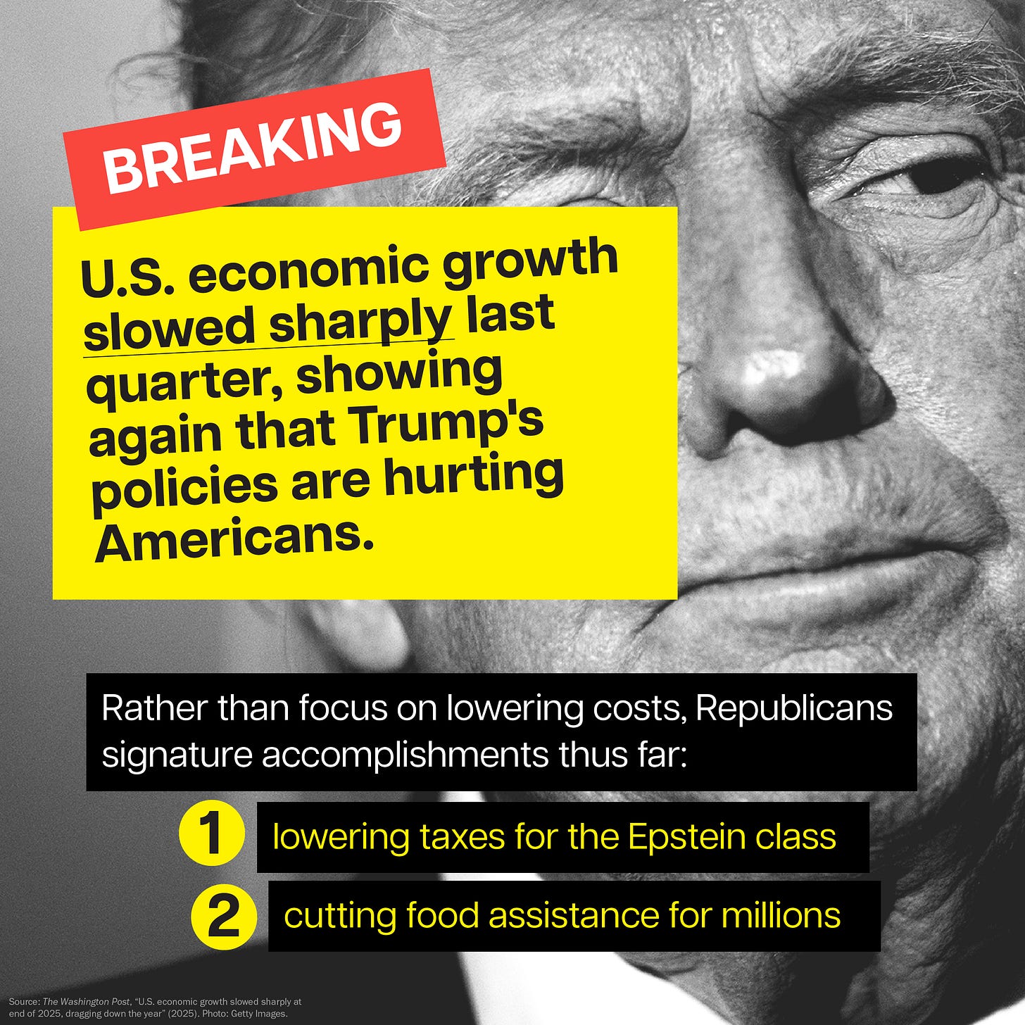 Donald Trump claims he inherited an economic mess, yet his policies are making our economy weaker and people poorer. New data from the Bureau of Economic Analysis out this morning shows that economic growth is slowing, rising 2.2% last year, down from 2.8% in 2024. At the same time, prices continue to climb thanks to Trump’s tariffs, some of which the Supreme Court struck down this morning. Despite their ruling, data released this morning from economists at the Budget Lab show that, even after striking down many of Trump’s tariffs, on average, Americans can expect to pay an additional $600 to $800 a year because of his trade policies.
